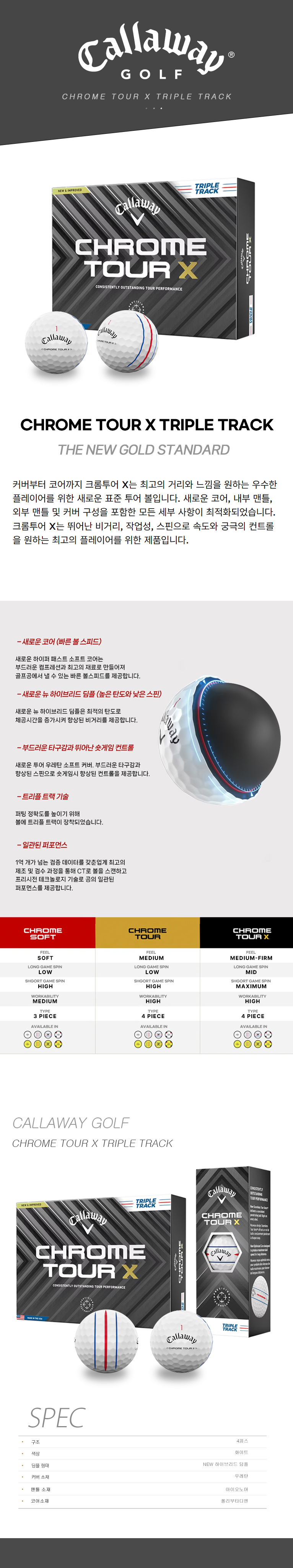 ■ 품명 및 모델명 : 캘러웨이 CHROME TOUR X 24 TRIPLE TRACK 12구 1더즌(4피스)