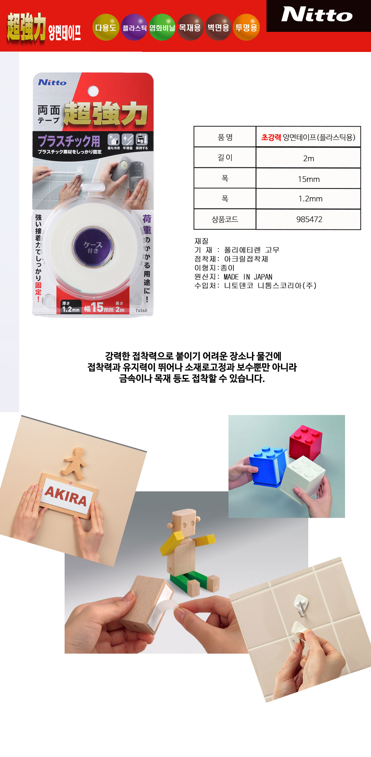 ■ 품명 및 모델명 : 초강력 양면테이프 플라스틱용(T4560/15mm*2m)