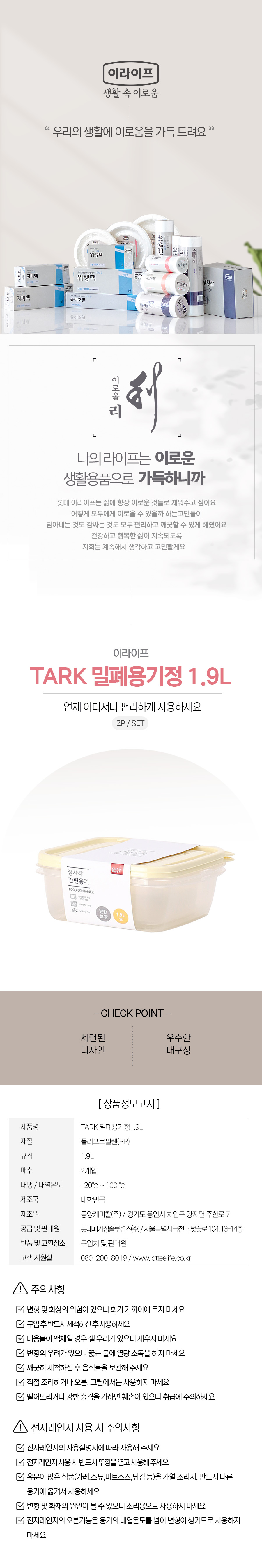■ 품명 및 모델명 : 이라이프 TARK 밀폐용기 정 1.9L 2P(버터옐로우)