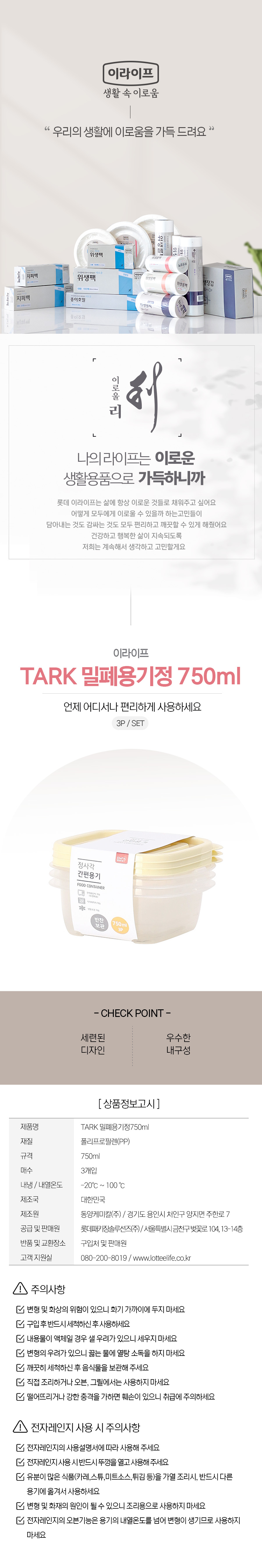 ■ 품명 및 모델명 : 이라이프 TARK 밀폐용기 정 750ml 3P(버터옐로우)