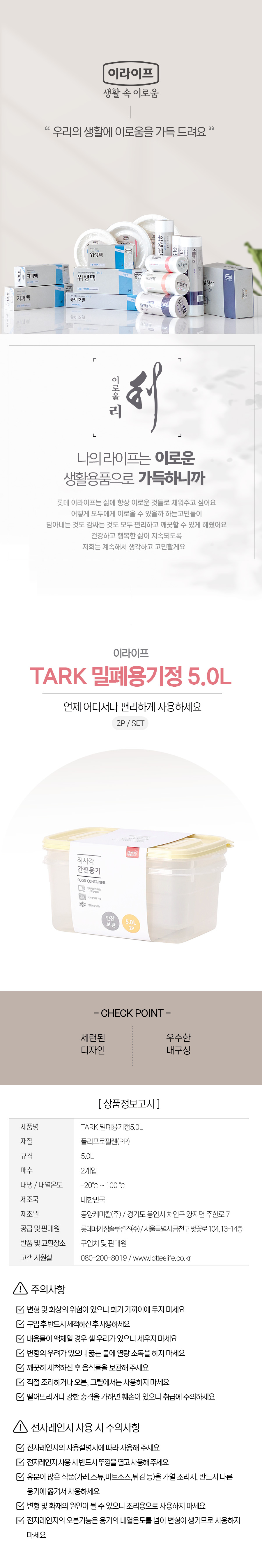 ■ 품명 및 모델명 : 이라이프 TARK 밀폐용기 직 5.0L 2P(버터옐로우)
