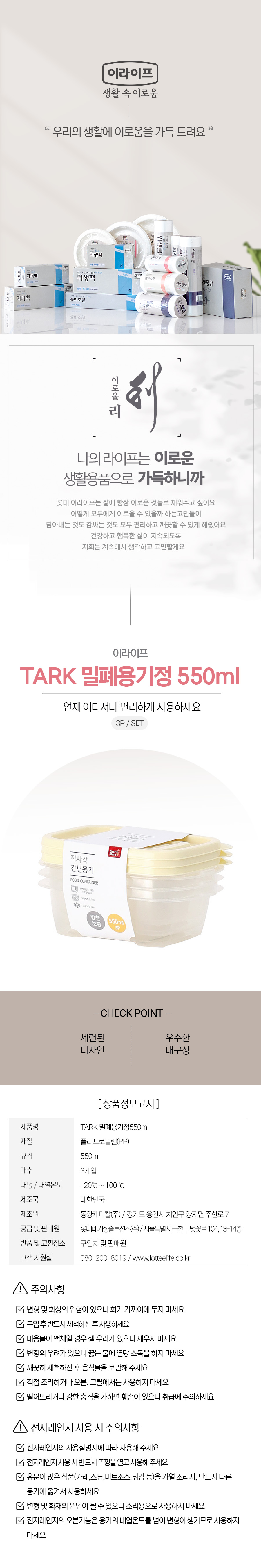 ■ 품명 및 모델명 : 이라이프 TARK 밀폐용기 직 550ml 3P(버터옐로우)