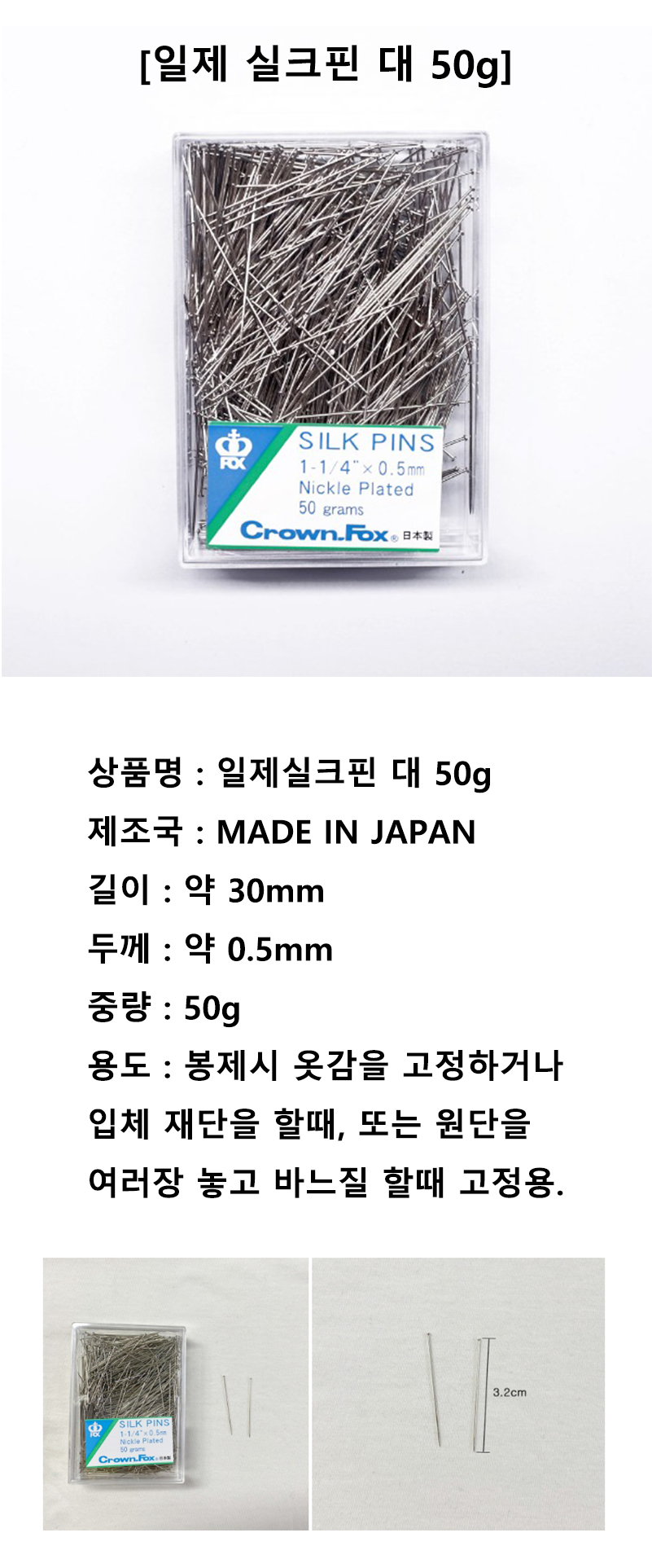 ■ 품명 및 모델명 : 일제 크라운폭스 실크핀 50g(대/길이30mm/두께 0.5mm)