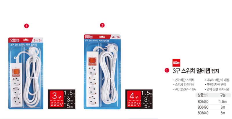 3구1.5M 스위치커버 멀티탭(오피스디포)
